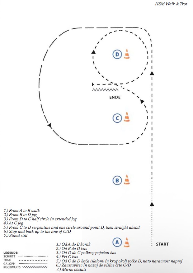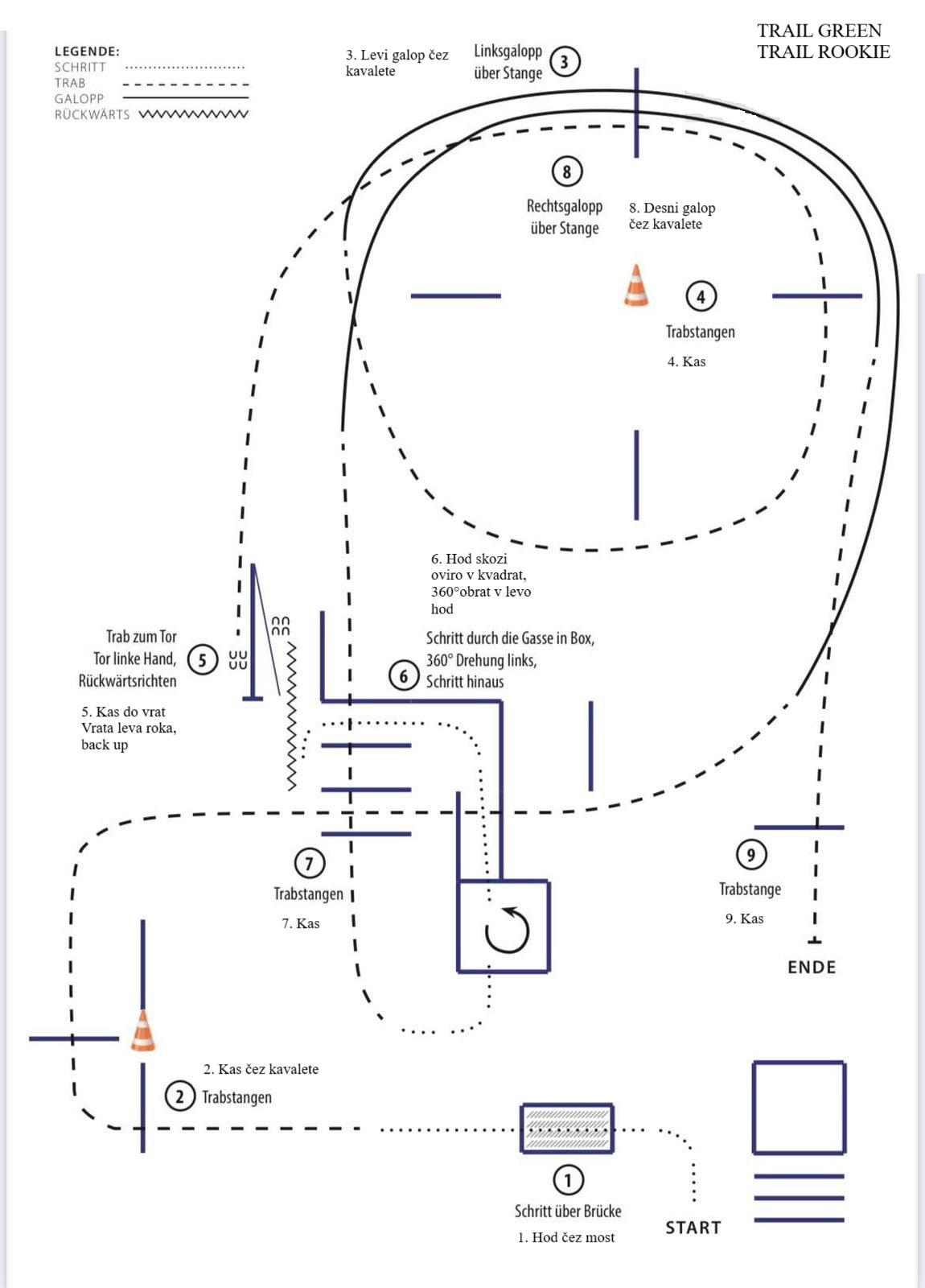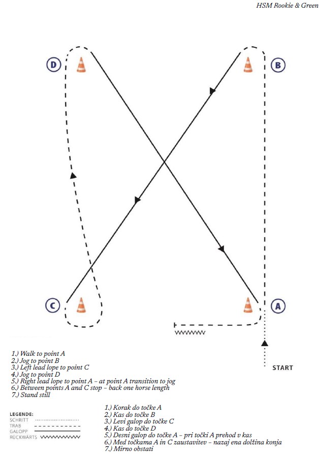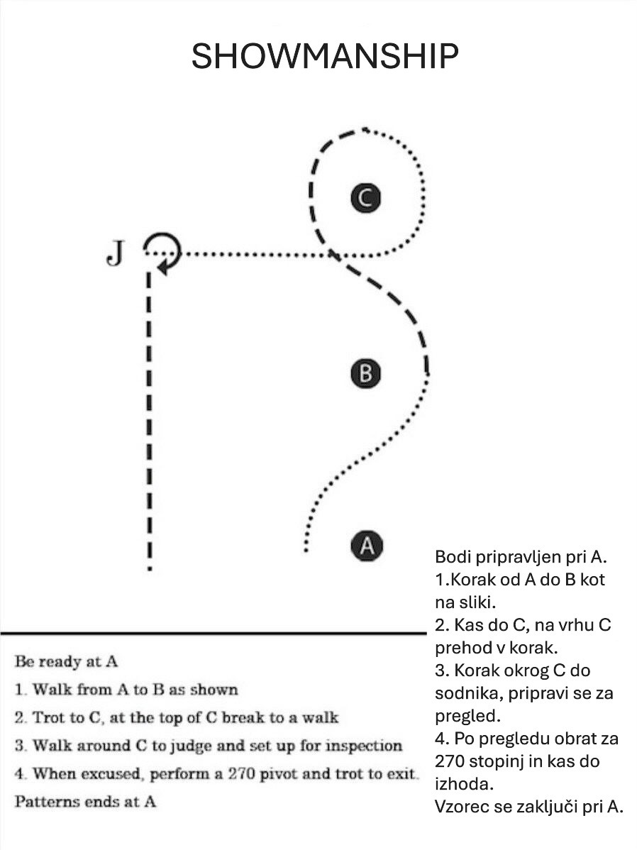 v maneži je v času nastopa dovoljena le prisotnost trenerja nastopajočega (s tretjo štartno številko), ostali spremljevalci obvezno spremljajo nastop s tribune.