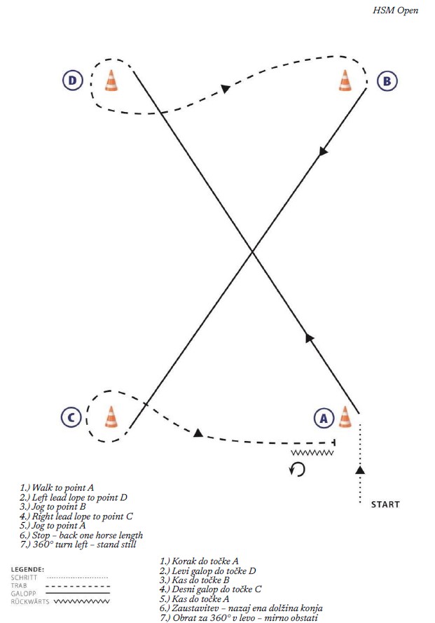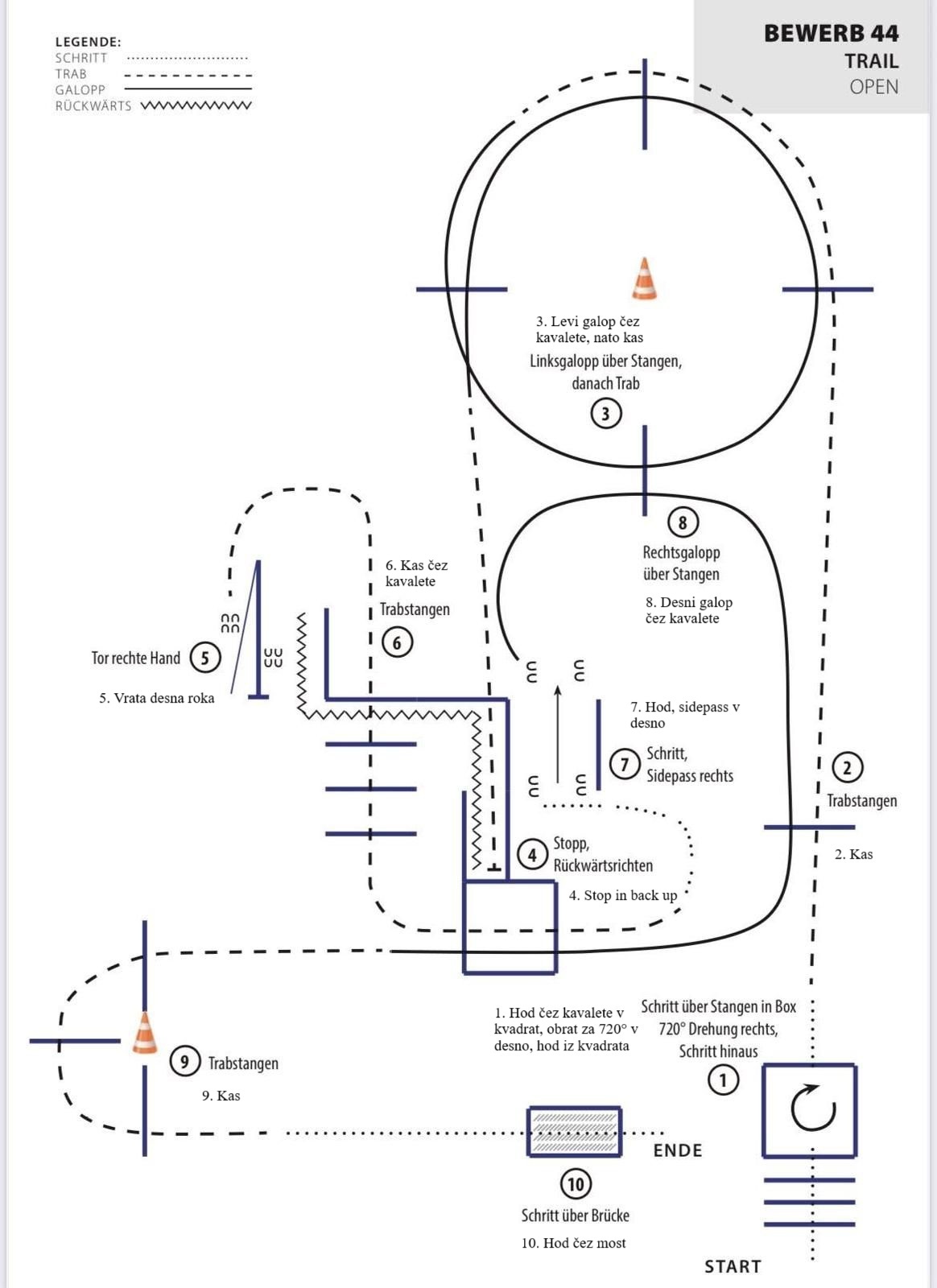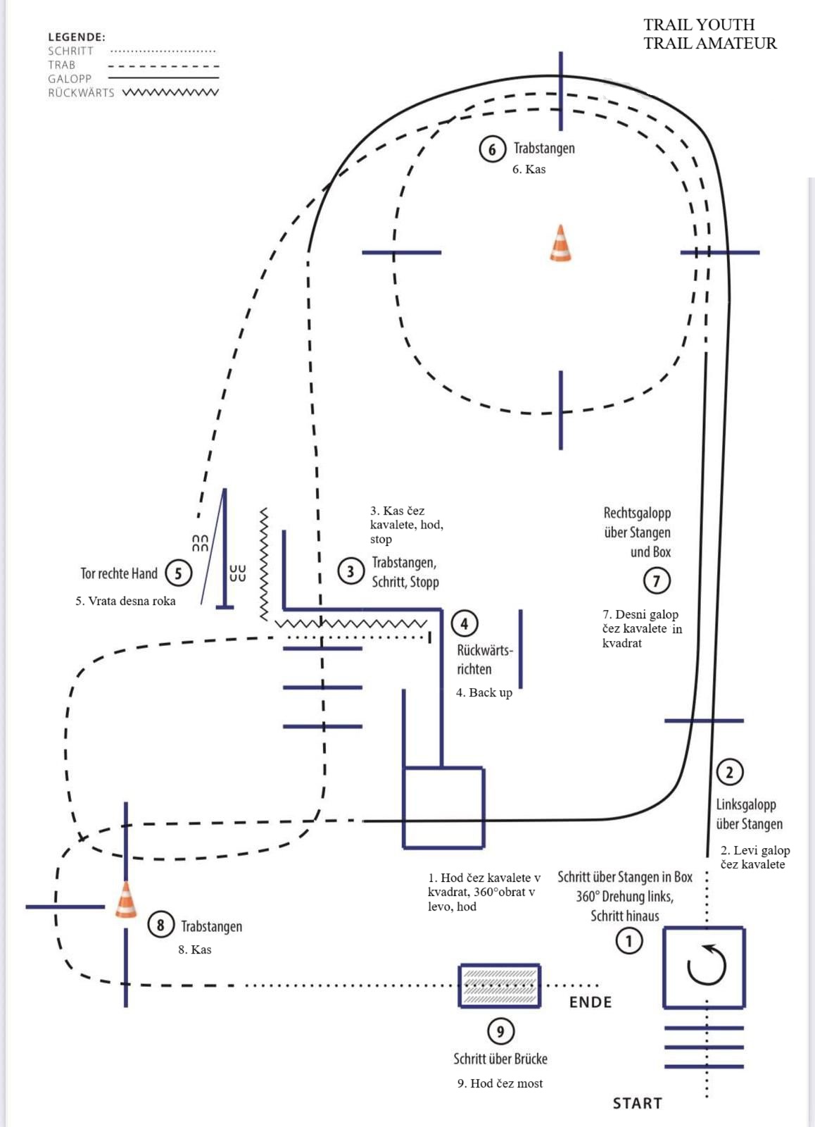 v maneži je v času nastopa dovoljena le prisotnost trenerja nastopajočega (s tretjo štartno številko), ostali spremljevalci obvezno spremljajo nastop s tribune.